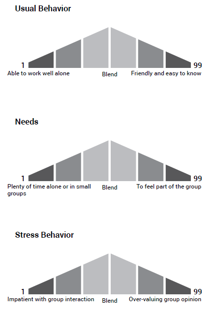 Social Energy is the extent of your independent versus social nature that impacts the way you interact with others and how you are perceived inside the workplace. Below are possible scoring patterns and how to explain them:
