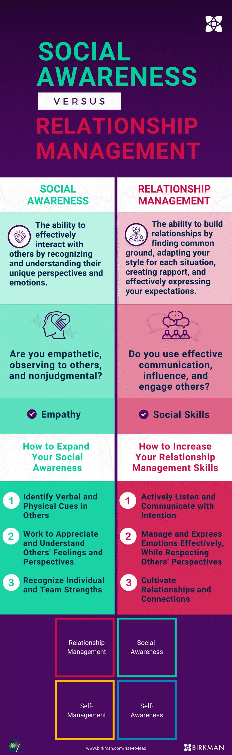 Take a look at the infographic below to understand the distinction between Social Awareness and Relationship Management and why both are critical to developing new managers across your organization.