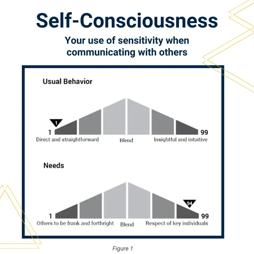 Birkman is excellent at pinpointing potential stress points. Self-Consciousness is one of the nine personality components measured by The Birkman Method. Figure 1 shows how Birkman revealed that this same employee was very direct in his communication style. This may lead others to believe he would want them to be just as straightforward in communicating back with him instead of receiving a more empathetic approach. Instead, his Needs shows the opposite. This reveals that he would likely be offended if they did so. He prefers others to communicate with him in a much more gentle, respectful, and tactful way. Knowing his Needs as a new employee, or a current employee, could be the difference between success and failure in the new role.